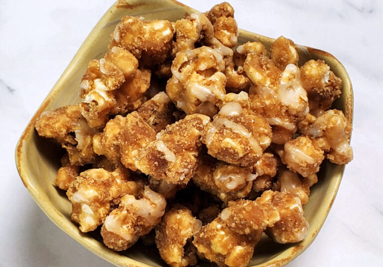 Get the recipe →Caramel corn that tastes like a cinnamon roll with orange icing? What’s not to like?