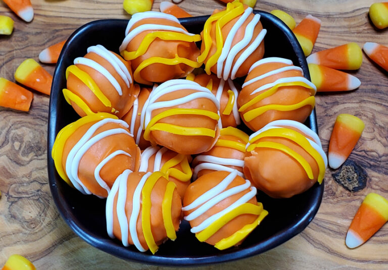 Candy corn and cookies bring two great layers of vanilla flavor to the tasty truffles.