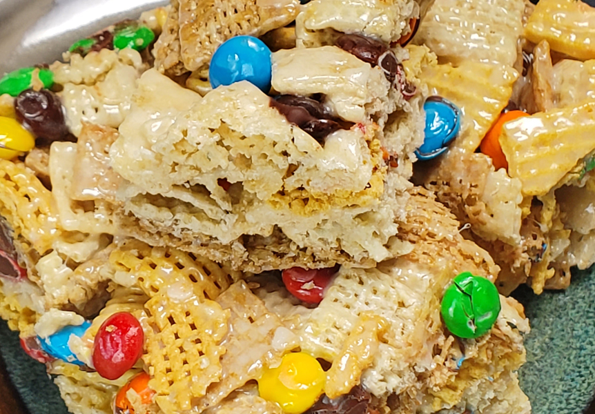 Switch out Rice Krispies for three flavors of Chex and you’ve got something special!