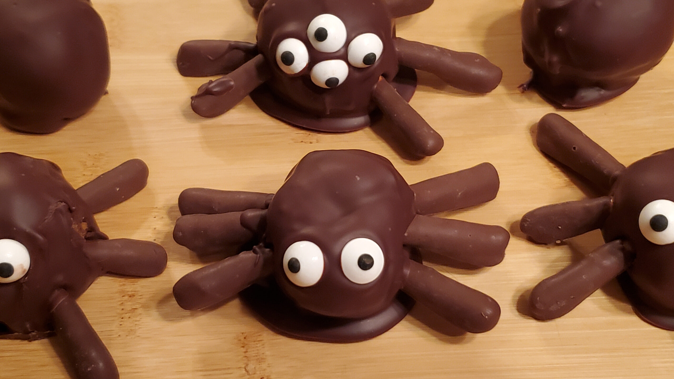 Once you’ve completed all the spiders, leave them on the counter until the chocolate has set.
