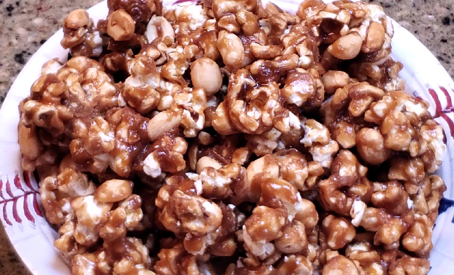 Remove the popcorn and peanuts from the pan and let it cool completely.