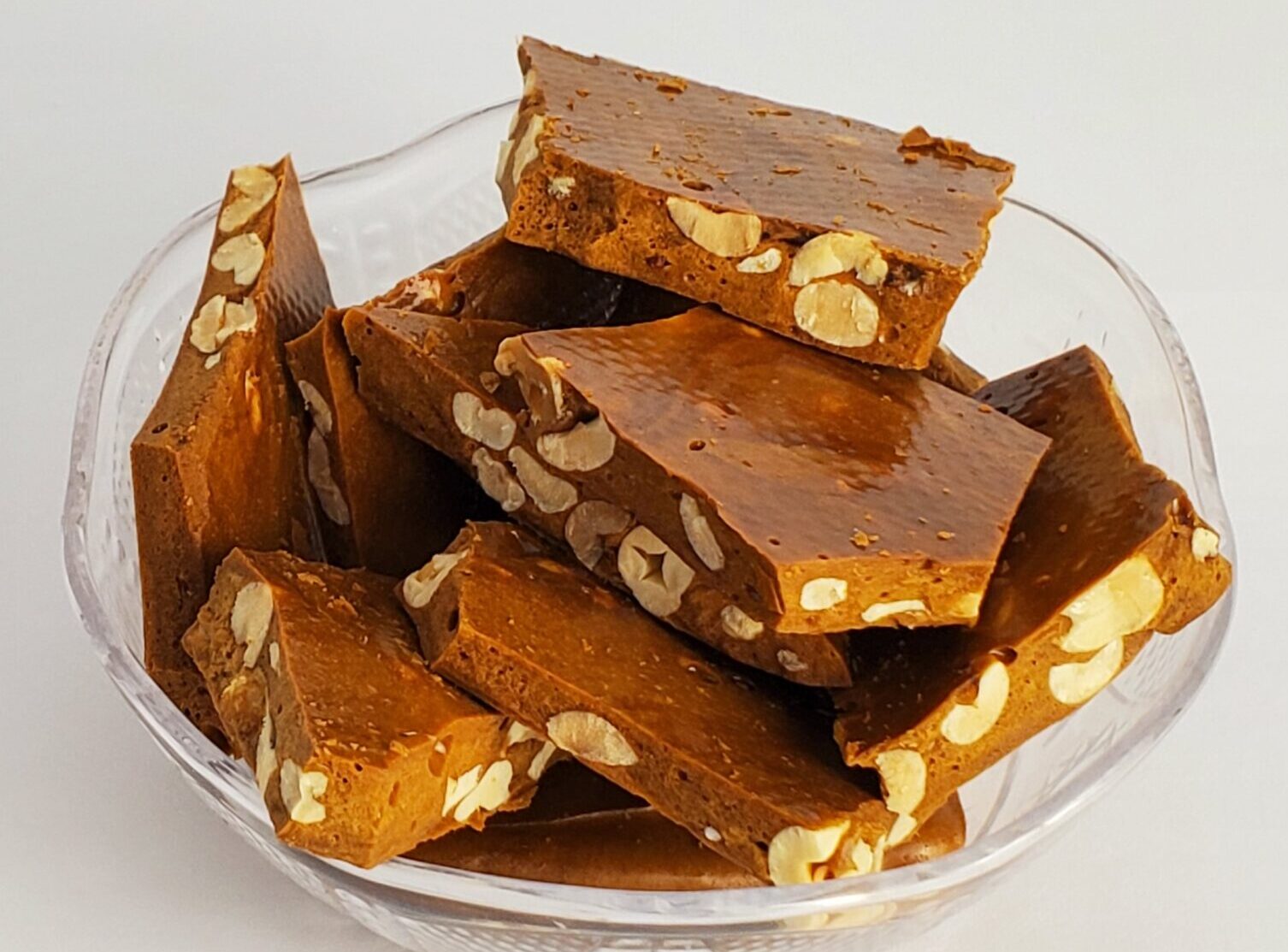 Once it’s cooled, break the brittle into whatever size pieces you’d like.