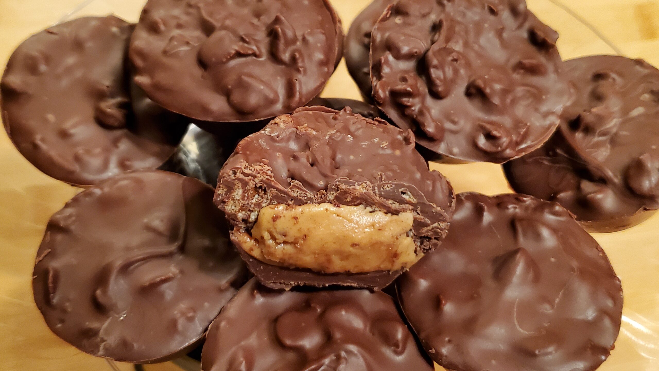 Imagine a peanut butter cup wearing a Crunch bar as a hat. That what these are like. 🙂