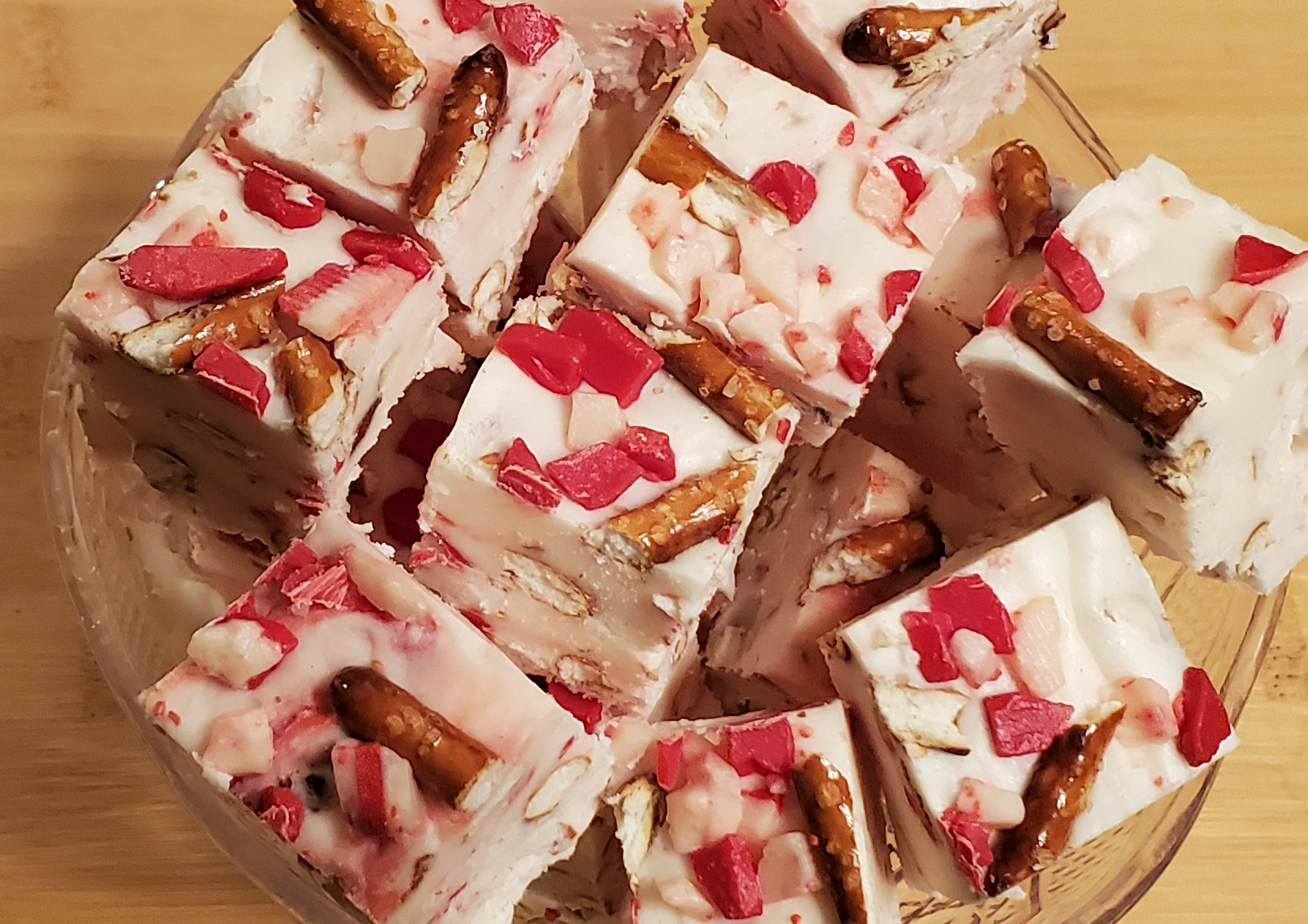 Sweet white chocolate, refreshing peppermint, and salty pretzel combine their powers to make this delicious holiday (or any time) treat.