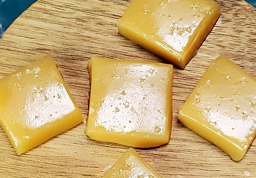 Remove the caramel from the pan and cut it into whatever size pieces you’d like