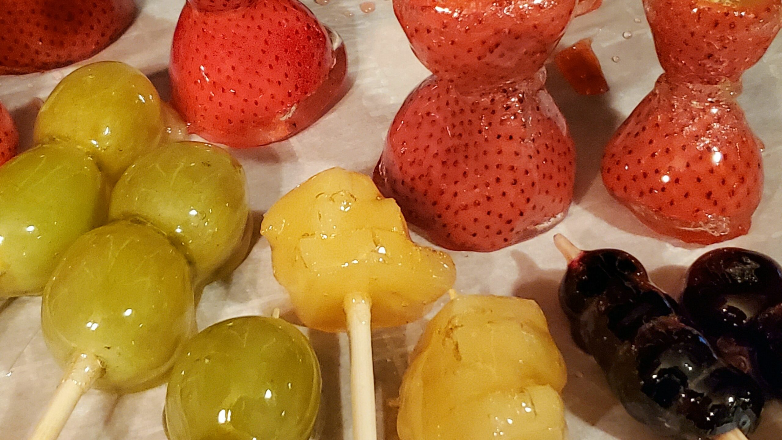 A traditional Northern Chinese treat that consists of fruits covered in hardened, almost glass-like, sugar. Originally made with Chinese hawthorn, you can now use pretty much any fruit and call it Tanghulu.