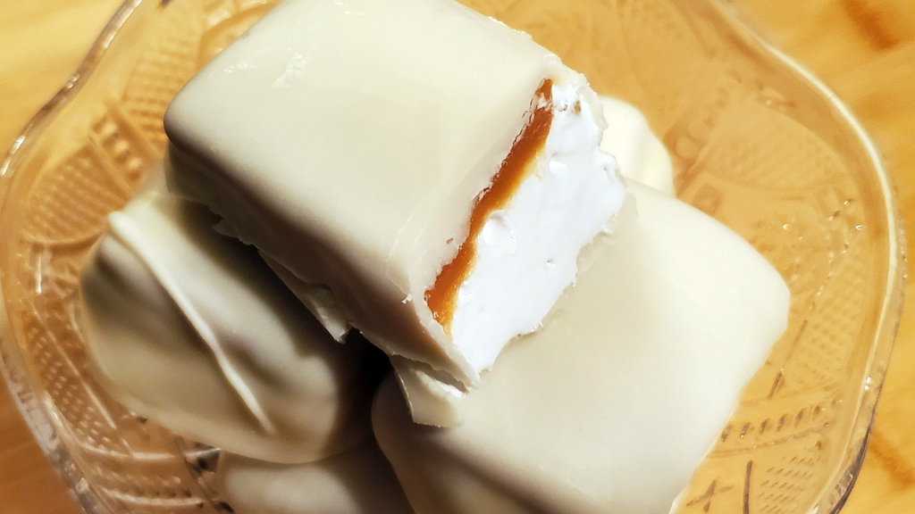 Place the nougat back in refrigerator until the caramel is firm but not too hard to cut, about 30 minutes to an hour.